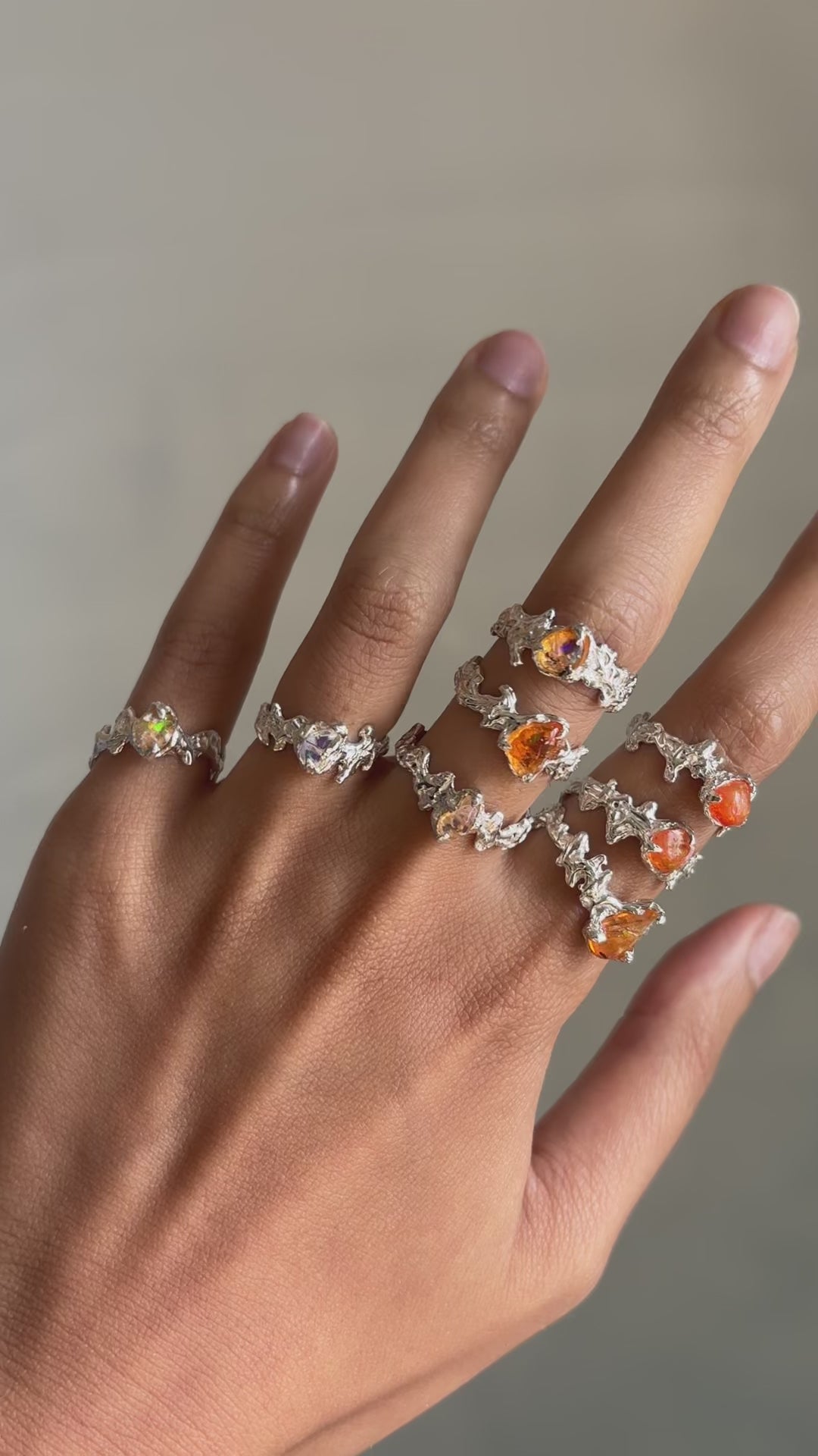 These handmade rings are made out of 925 sterling silver with rough Mexican opals.