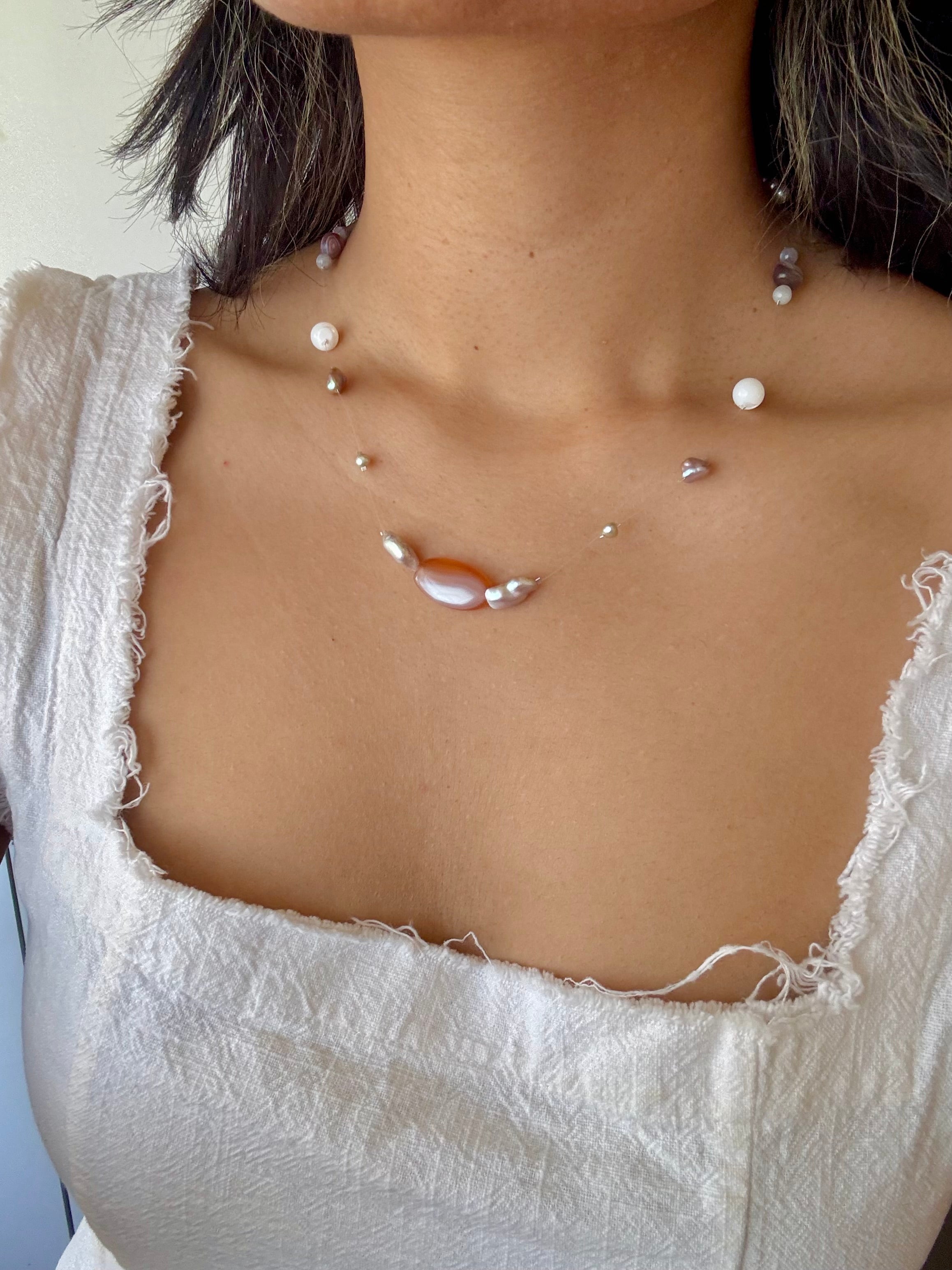 Strung with freshwater and keshi pearls, each composition is guided by the natural variation in form, allowing space and balance to shape the piece.