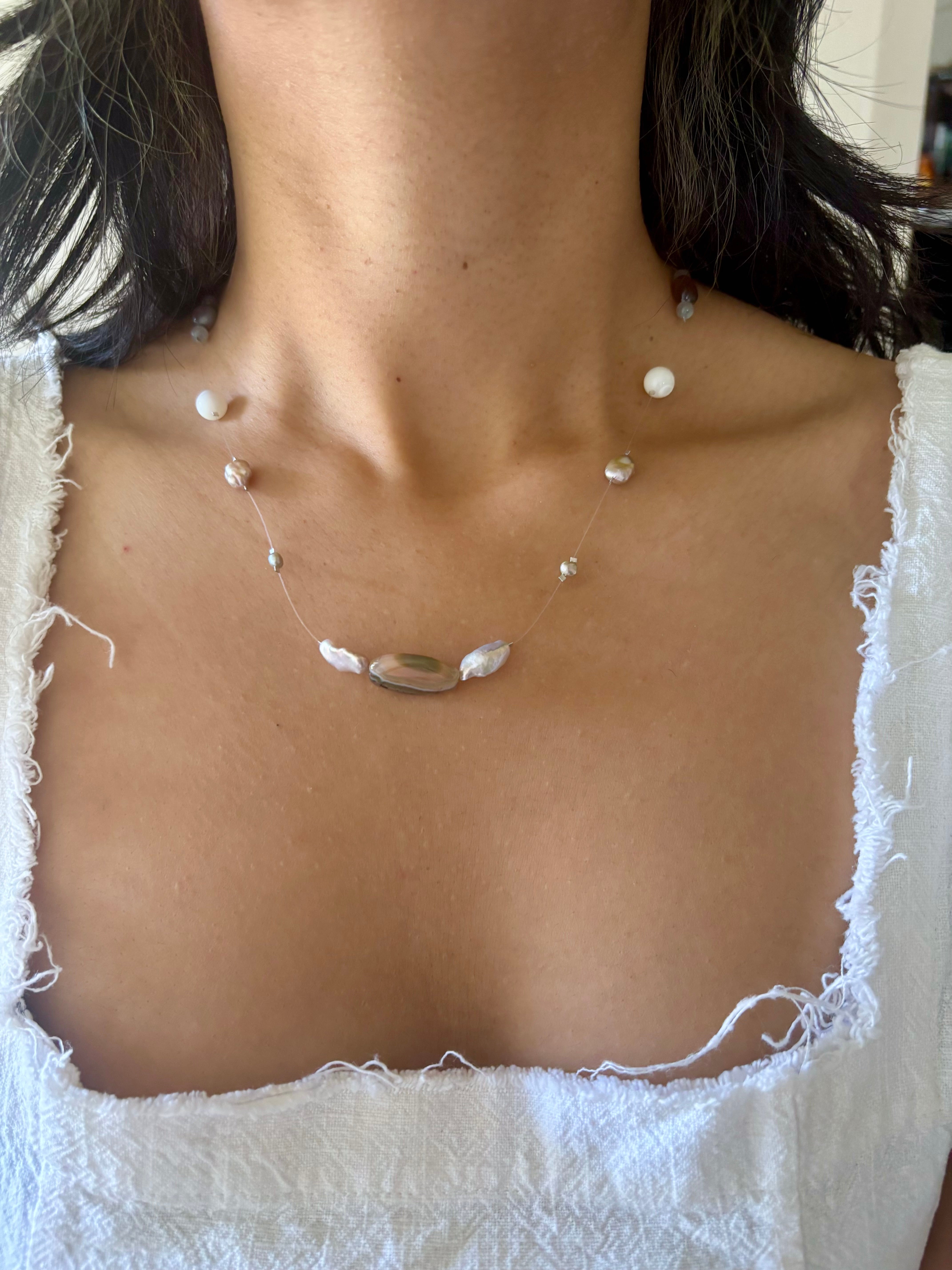 Strung with freshwater and keshi pearls, each composition is guided by the natural variation in form, allowing space and balance to shape the piece.
