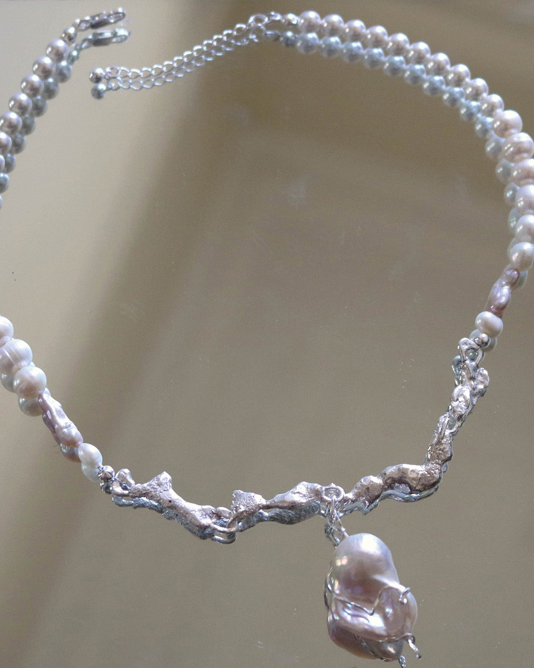 This necklace includes handmade sterling silver chains. The statement Baroque Freshwater Pearl is wrapped in sterling silver wire. No item is the same due to the nature of the pearls and organic shapes and chains. However, we do our best to make it similar as best as possible.