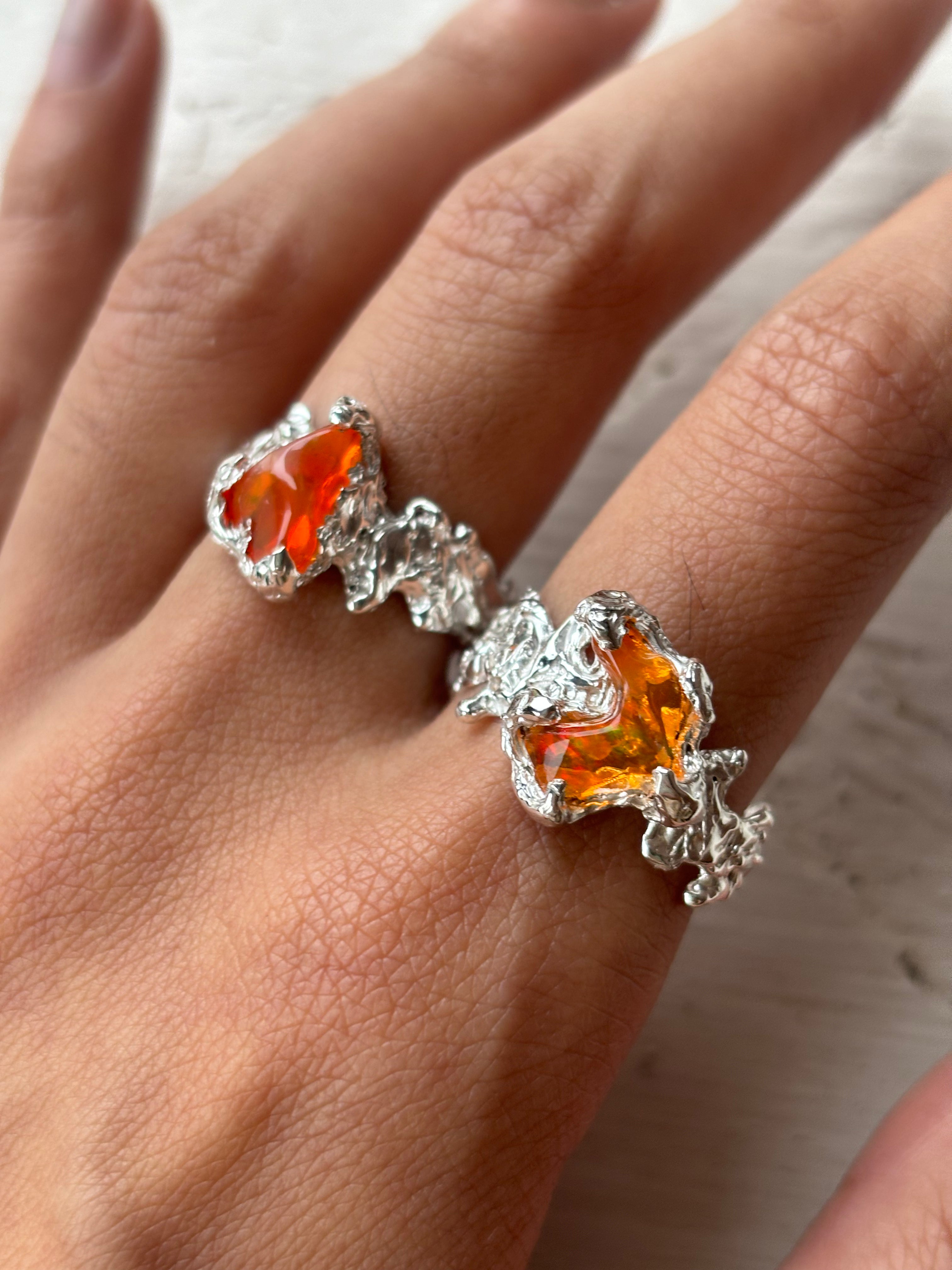 Ignite Ring - Mexican Opal - Orange/Silver