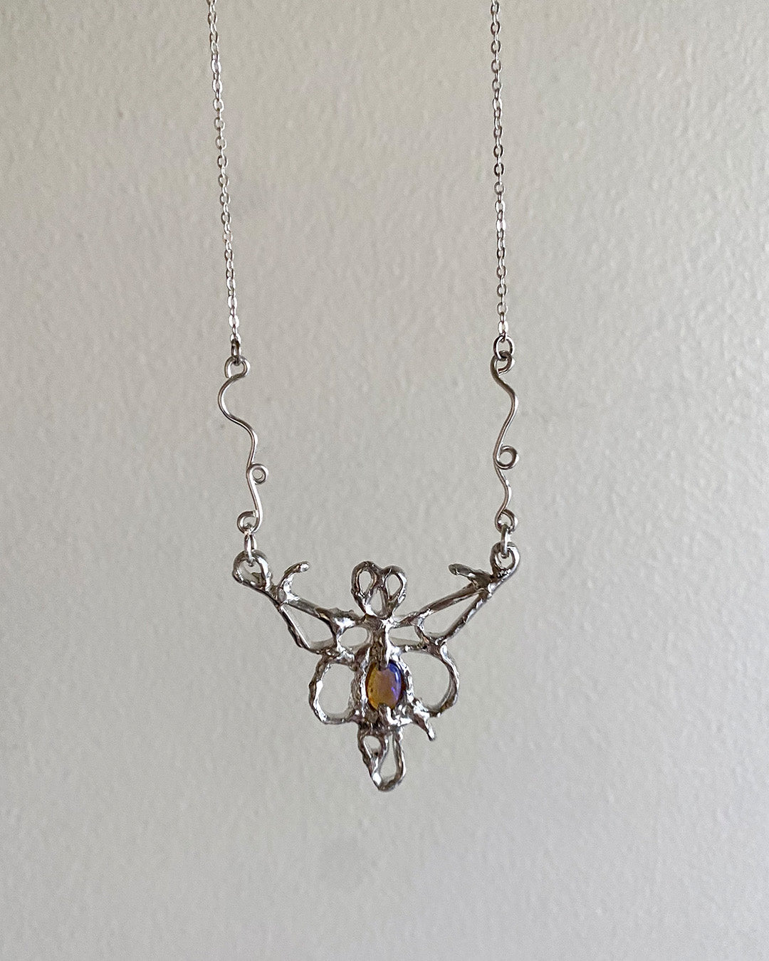 Handmade recycled silver pendant with an Australian black opal. Wire and chain is made out of silver