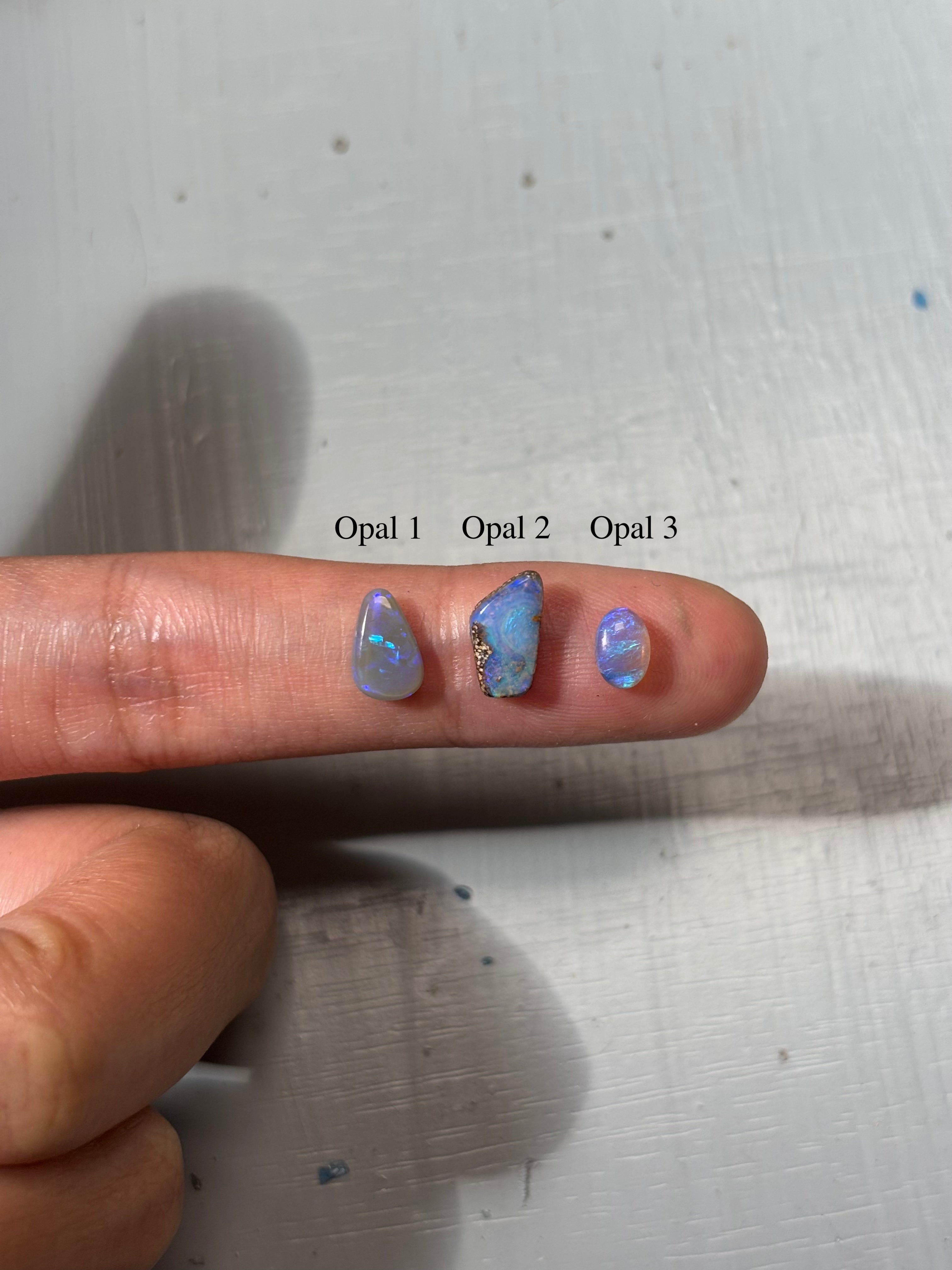 Our "Choose Your Stone" option is back! We have 3 available unset Australian opals for you to select from, along with your choice of metal (silver or gold) and ring size. Please email your ring size and order number to nadiaridiandries@gmail.com.