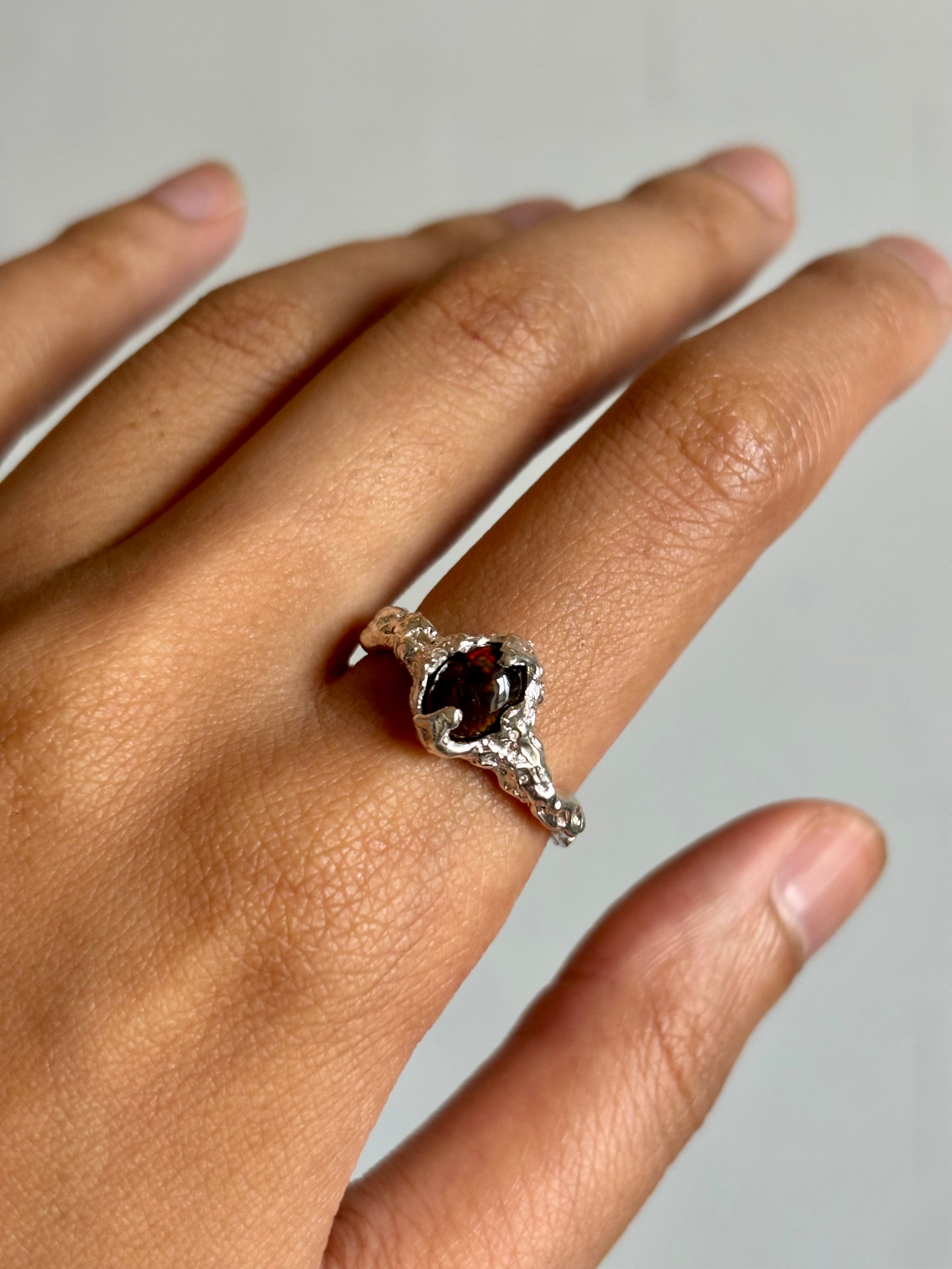 Size Q - Nymph Ring - Silver/Green Ethiopian Opal