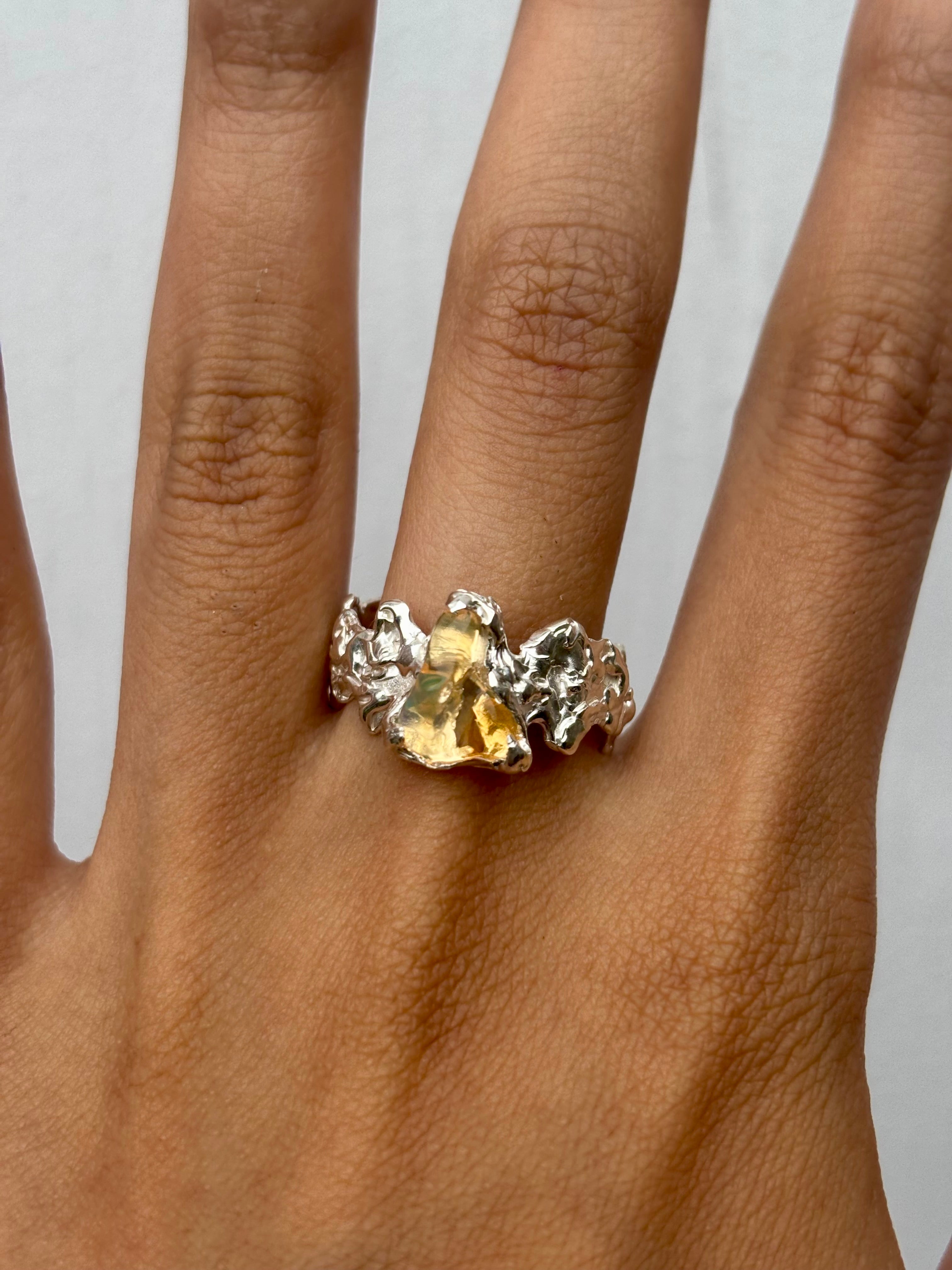 Fire Mexican opal rings using yellow Mexican opals set in recycled sterling silver.